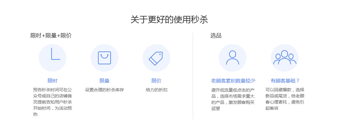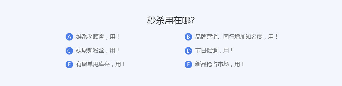 秒杀是能够瞬间引爆销量的营销助手,期待给您带来不一样的销售机遇和体验。